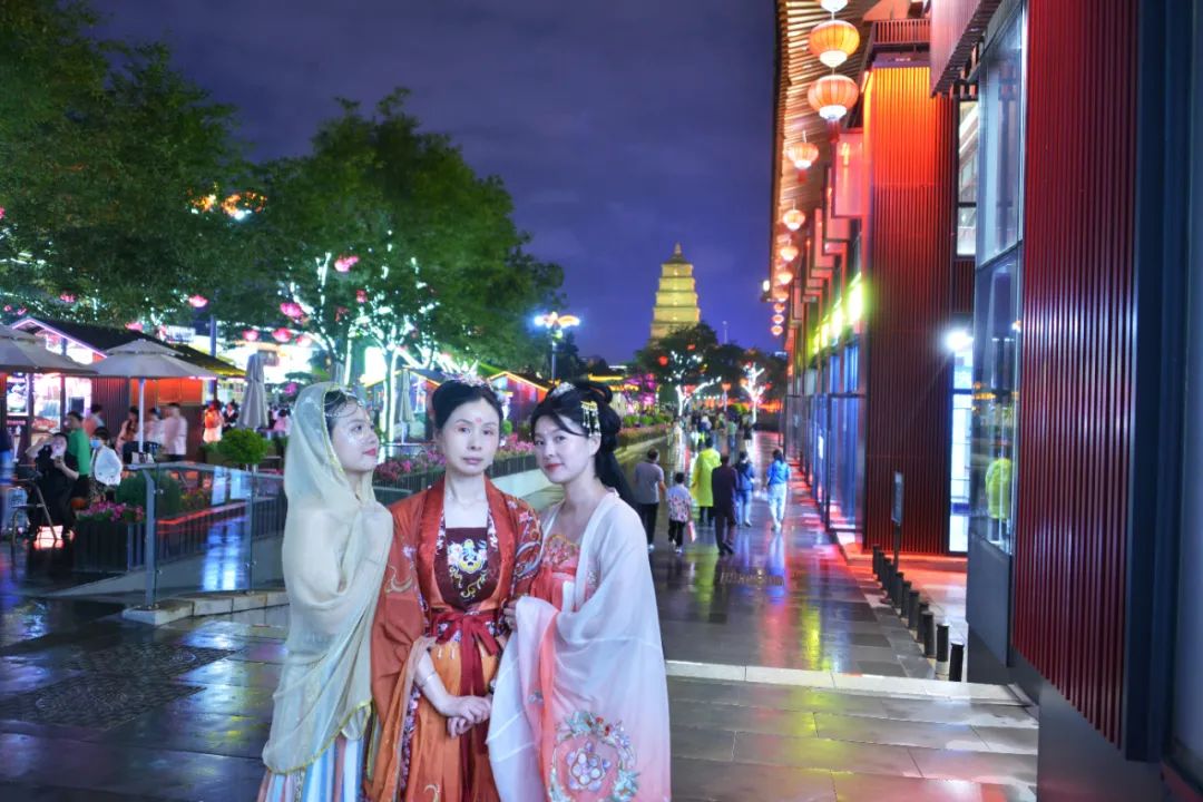 除此之外,大唐不夜城也是西安的一大特色。在這里,我們仿佛穿越回唐朝,感受到了大唐文化的繁華和輝煌。我們湘儀的女將們也紛紛換上古裝,赴一場穿越千年的邀約。