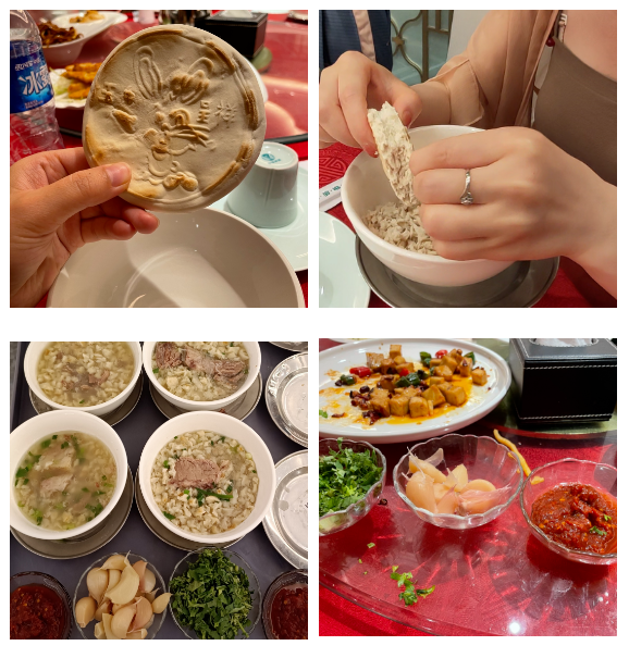 同盛祥飯莊以經(jīng)營獨具民族特色的牛羊肉泡饃而馳名中外。百年老字號【同盛泡饃】被譽為“同盛祥天下第一碗”,其牛羊肉泡饃制作技藝被列入國家級非物質文化遺產(chǎn)保護名錄。“同盛”二字也寓意同心同德,繁榮昌盛。一壺茶一桌友,共坐閑話掰泡饃,這也是西安“慢”的儀式。